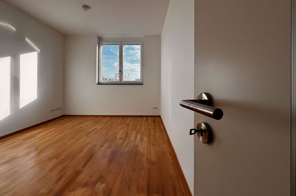Die lichtdurchflutete Wohnung verfügt über eine großzügige Loggia, edles Echtholzparkett, eine offene Wohnküche sowie ein stilvolles Masterbad mit Wanne und Dusche. Eine Fußbodenheizung sorgt für angenehmes Raumklima, während bodentiefe Fenster mit Rollläden eine elegante Atmosphäre schaffen.